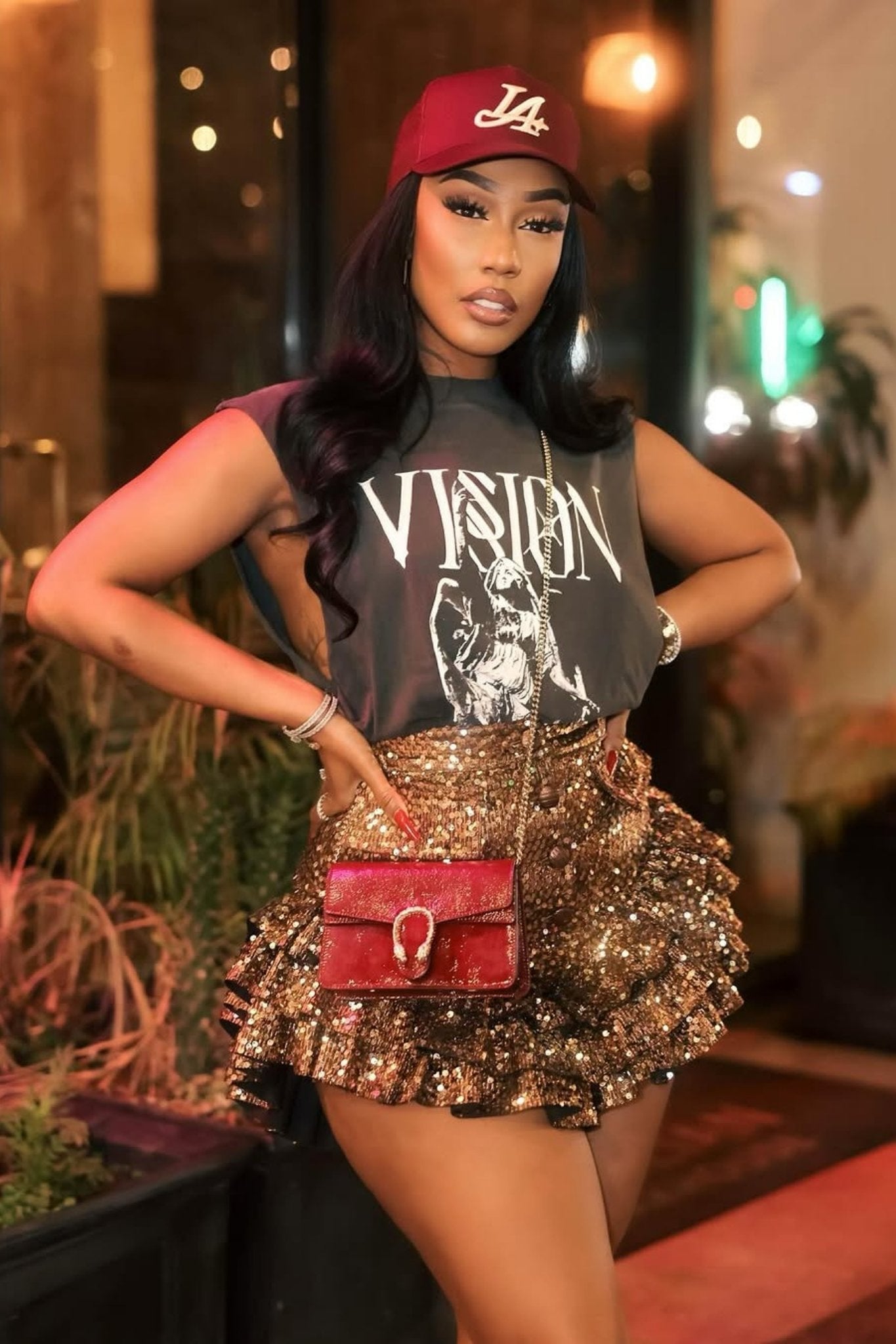 Add a touch of playful glamour to your holiday wardrobe with the Elara Sequin Ruffle Shorts. These dazzling shorts feature shimmering gold sequins and layered ruffle detailing that exudes confidence and festive charm. Perfect for pairing with sleek tops or bold blouses, they’re a standout choice for holiday parties, New Year’s Eve, and glamorous celebrations.