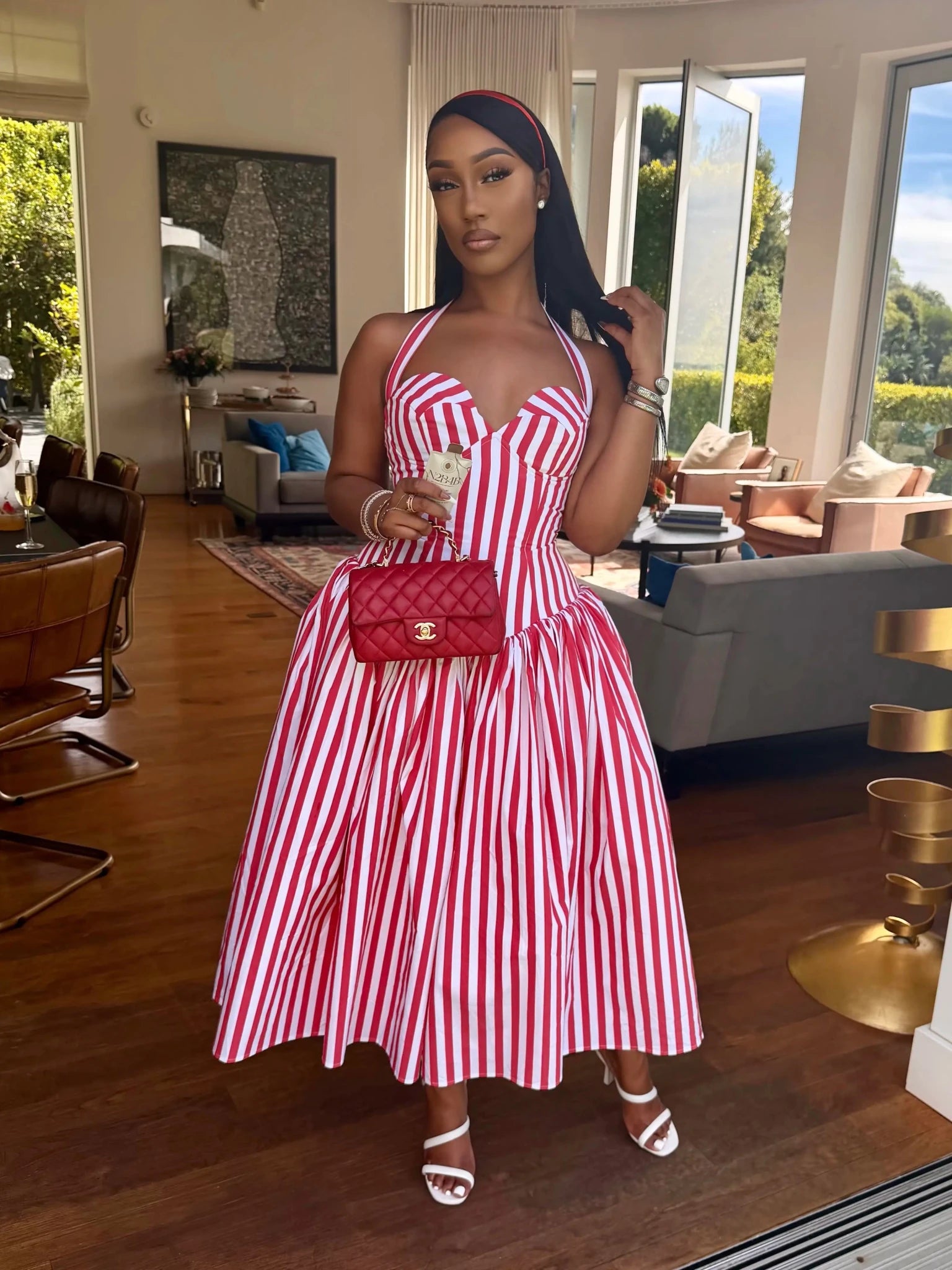 The Ivana Red Striped Puffed Maxi Dress is the kind of dress that does all the work for you. Bold, feminine, and designed to sculpt, this standout maxi is made to create that snatched hourglass shape with a structured bodice that pulls you in at the waist and supports the bust beautifully.